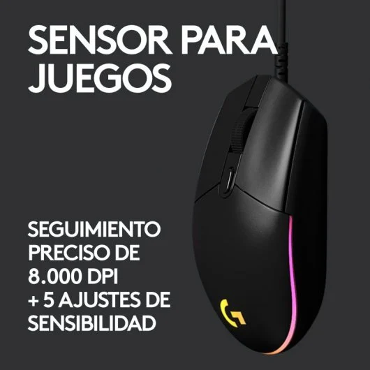 - SENSOR PARA GAMING Te proporciona un seguimiento preciso del cursor y una respuesta rápida. Con una sensibilidad ajustable de 200-8.000 dpi, puedes elegir el valor idóneo para tu estilo de juego. Utiliza el software Logitech G HUB para programar hasta 5 preajustes.